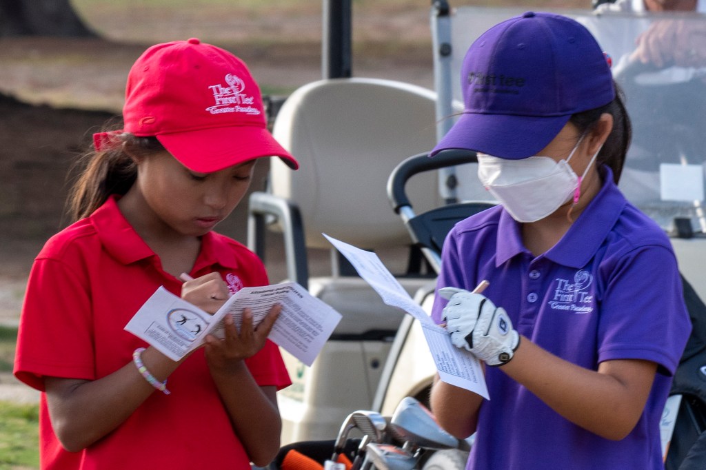 Kalea escaping troubleRussell has a good look to make his puttEllee and Faith exchanging scores Michael knows to keep posture after impact